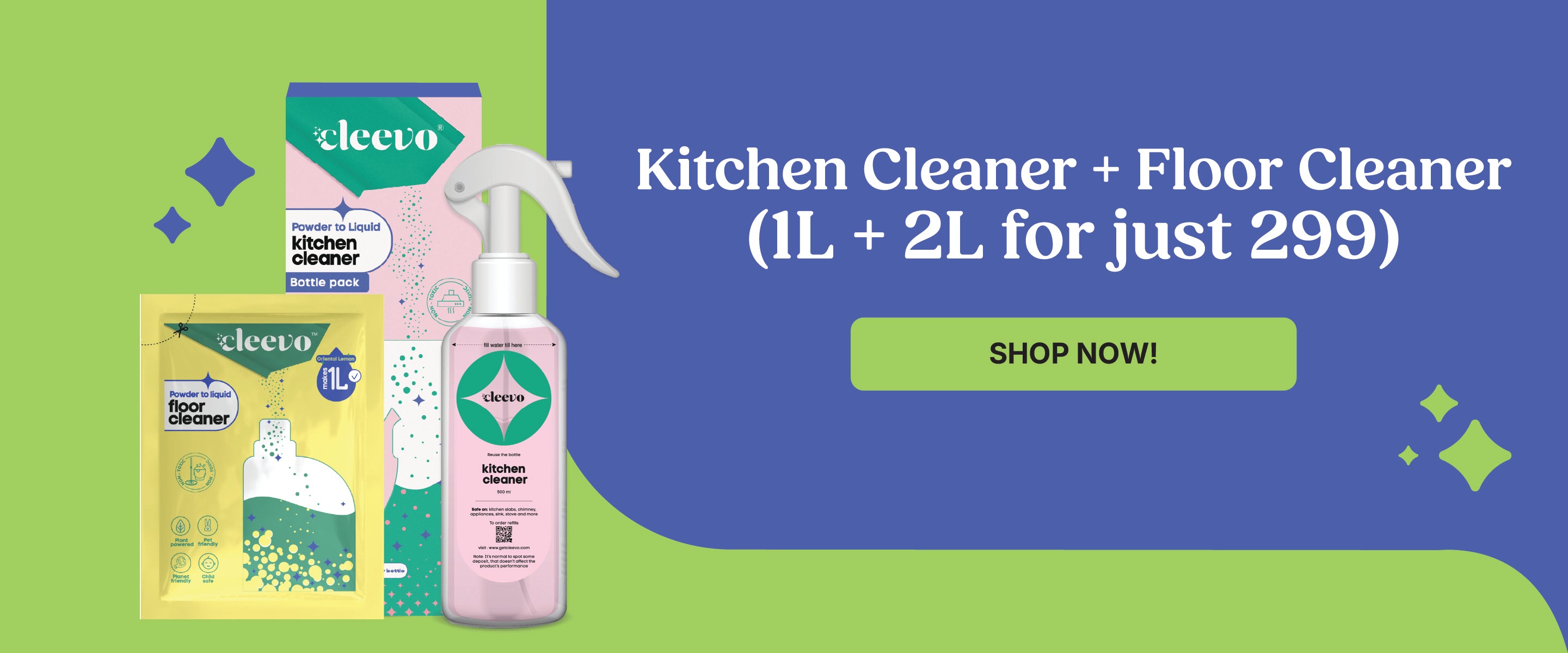 Made with non-toxic chemicals, Cleevo Powder to Liquid floor cleaner cleans floors so good, it'll leave you floored!