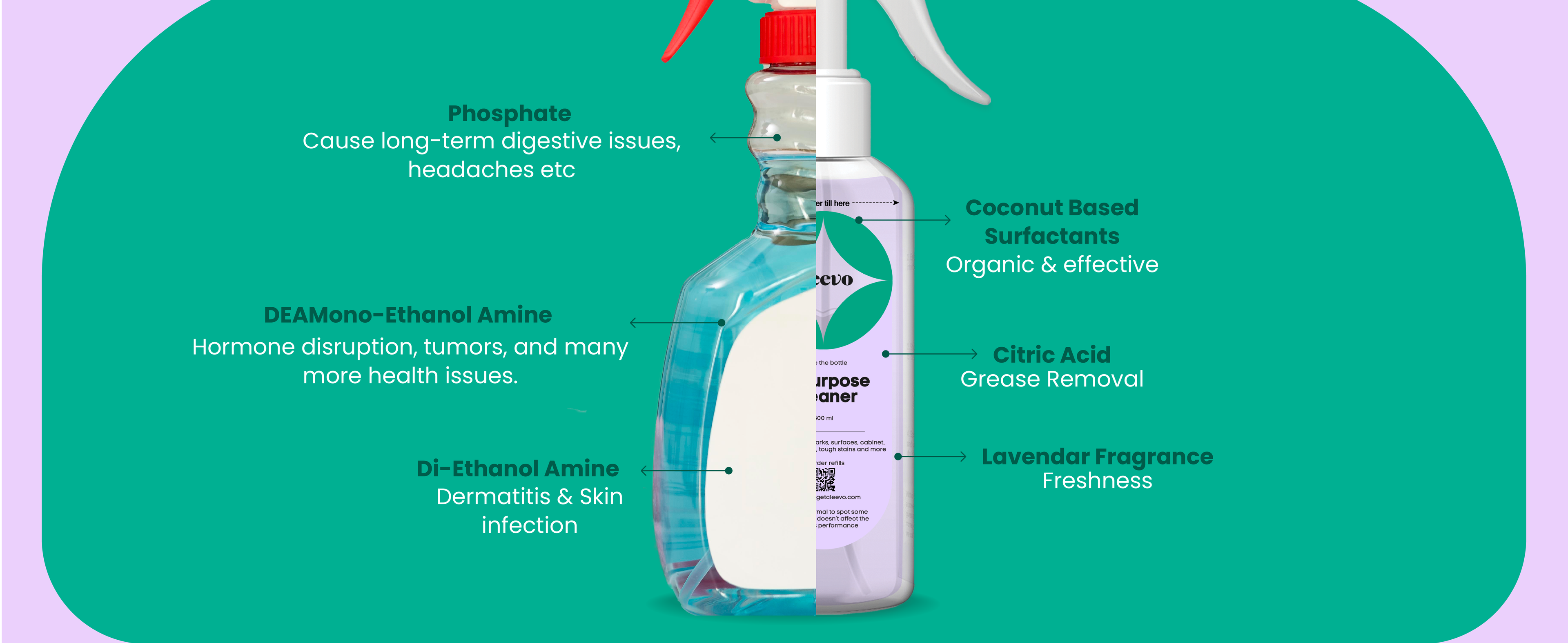 Our all purpose cleaner, is made from carefully sourced non toxic ingredients that even works on tough stains and leaves your home smelling fresh and radiant. It works wonders on a variety of surfaces including wood, glass, tiles, kitchen sinks, and platforms. Elevate your cleaning routine with our all purpose cleaner and enjoy a spotless and refreshed home.